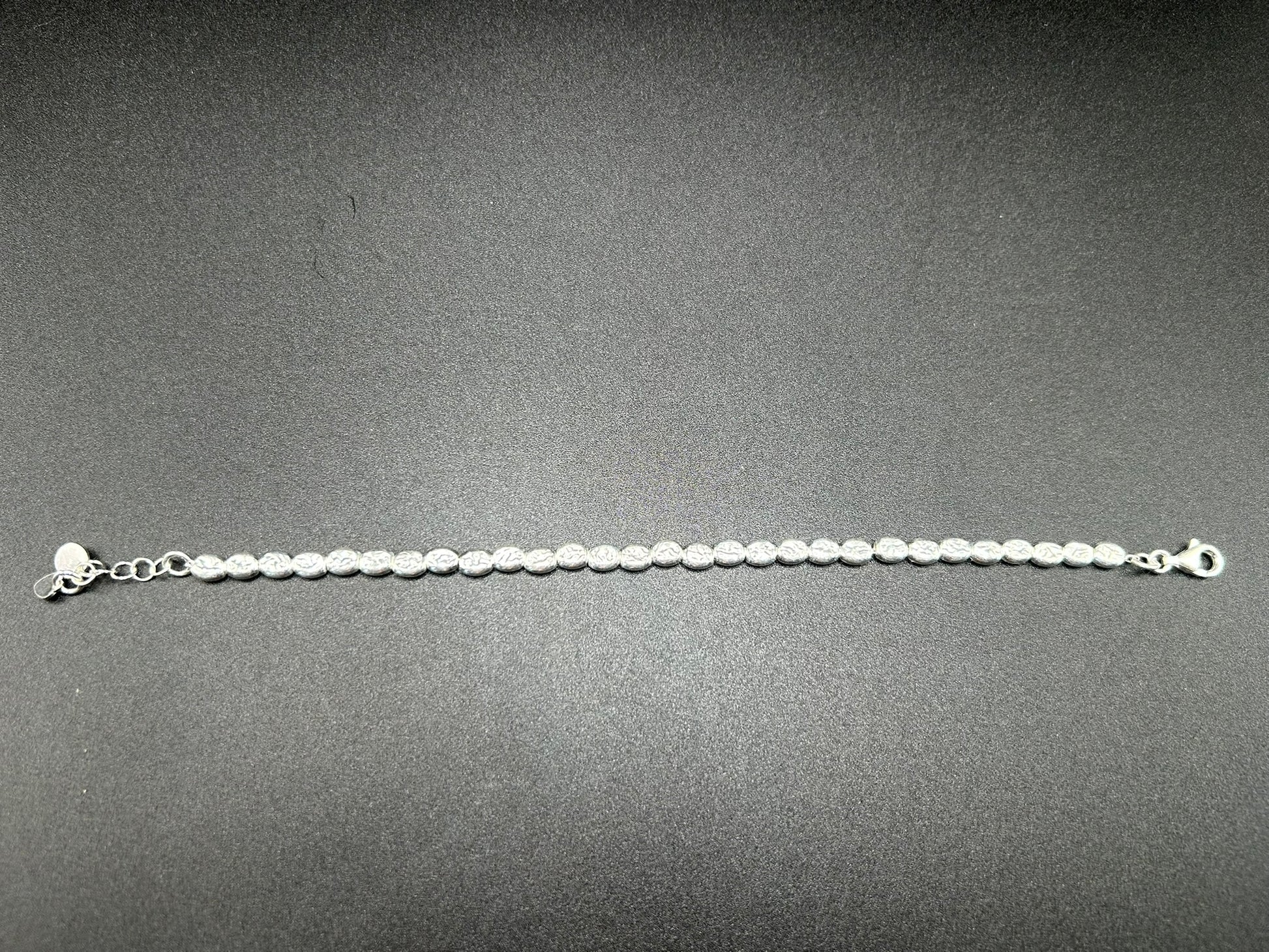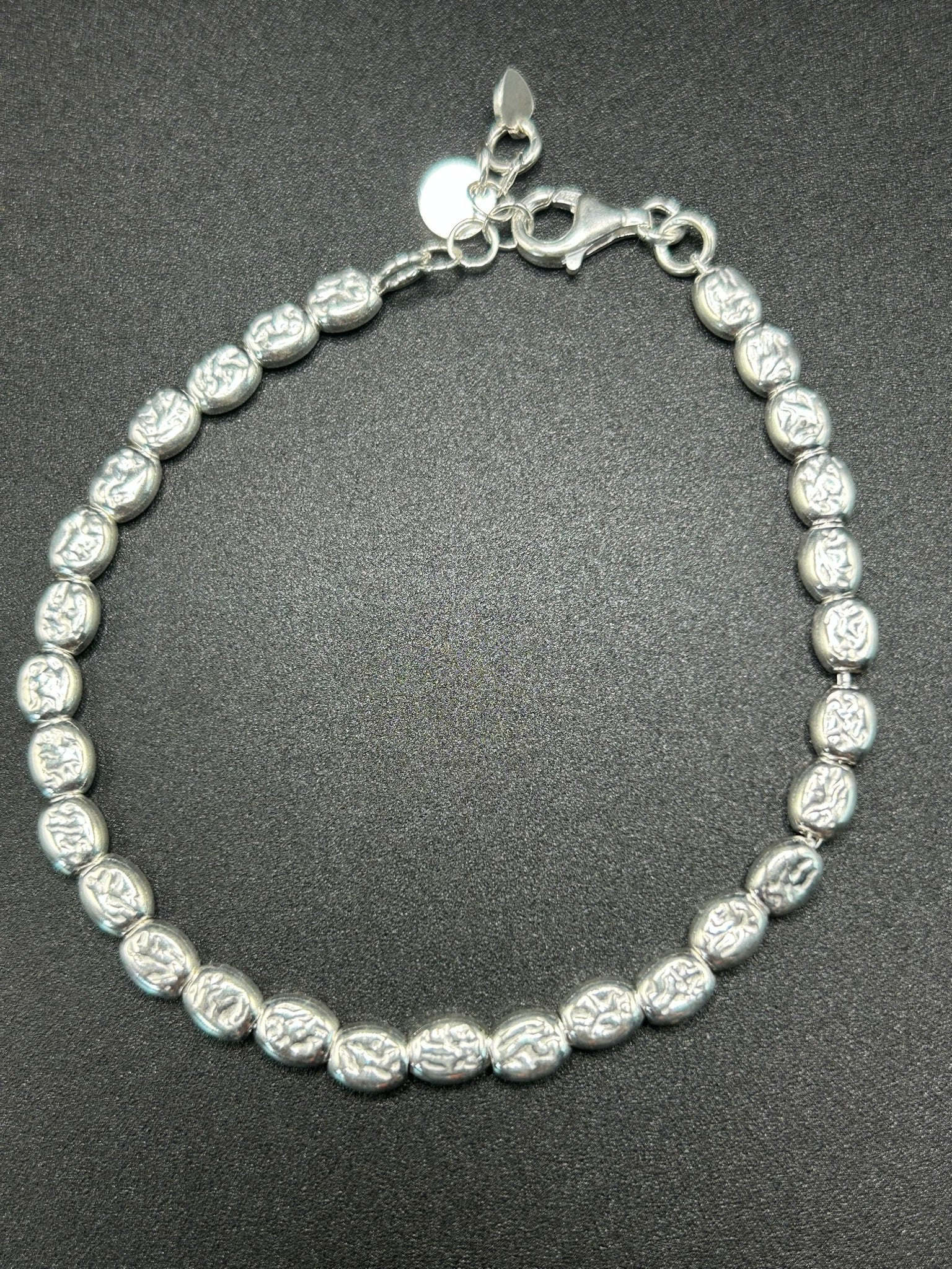 Es besteht aus einer Reihe von ovalen Elementen (Körnern) aus bearbeitetem Silber.